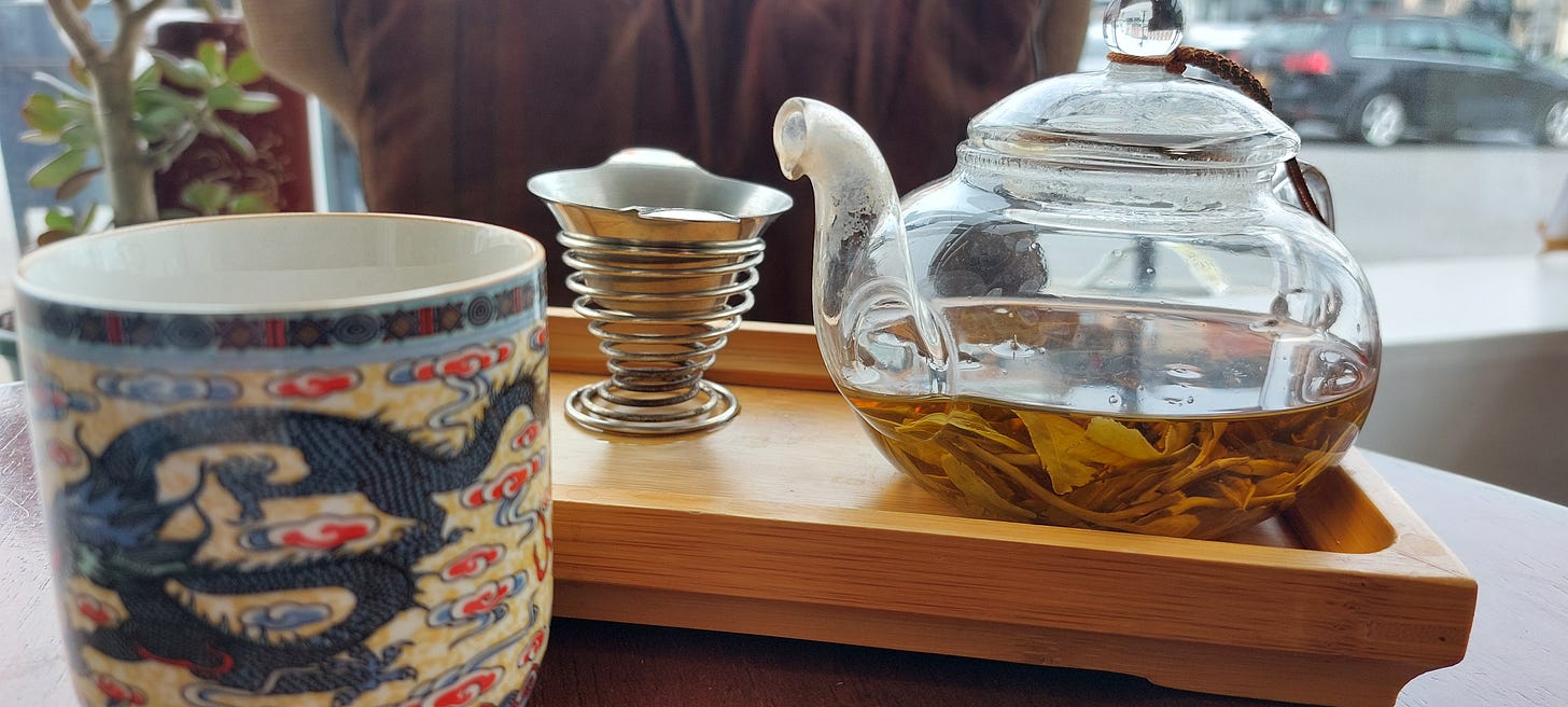 As I sip jasmine green tea that holds the memory of Fujian soil and air